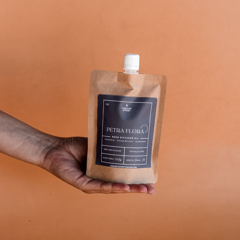 Refill your Concrete Poppy Reed Diffuser with our Reed Diffuser Oil Refill. Includes 10 complimentary Reed Sticks.